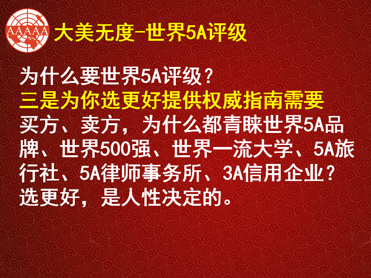 为什么要世界5A评级?三是为你选更好提供权威指南需要